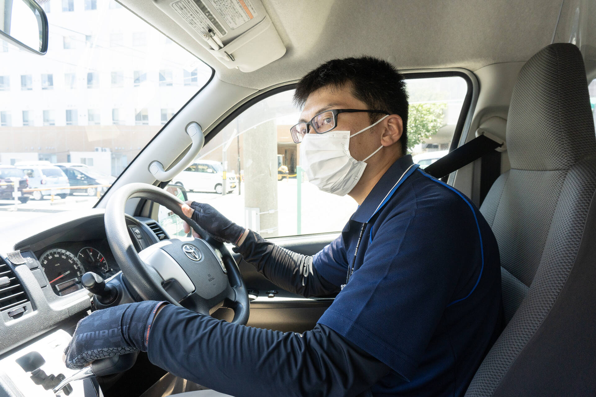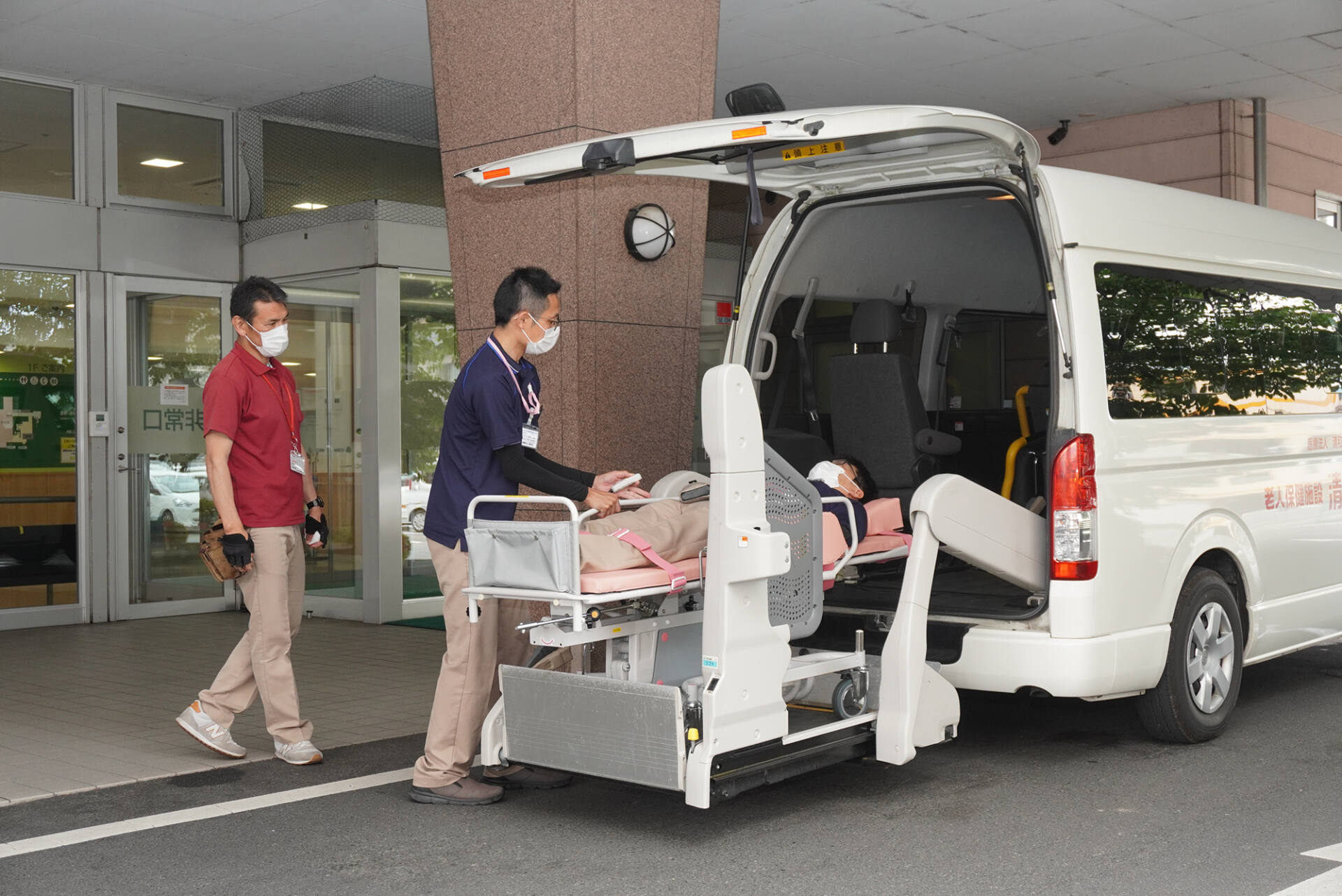 清和会本部(水沢)の送迎業務の一日を紹介します。ドライバーの勤務は、朝6時からと朝8時からのシフト制です。透析患者さんやリハビリ利用者さんの送迎のほかにも、へき地診療や訪問診療、転院時の患者搬送を担っています。